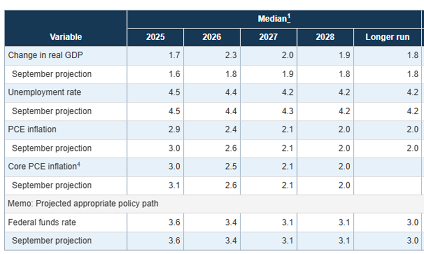 Labor markets have softened, with slower job growth contributing to recent rate decisions. The unemployment rate has edged up to 4.5%–4.6%. While not a "recessionary" level yet, the cooling labor market is the primary reason the Fed is comfortable cutting rates. The Fed projects unemployment rate at 4.4% for 2026, and to moderate to 4.2% in 2027.