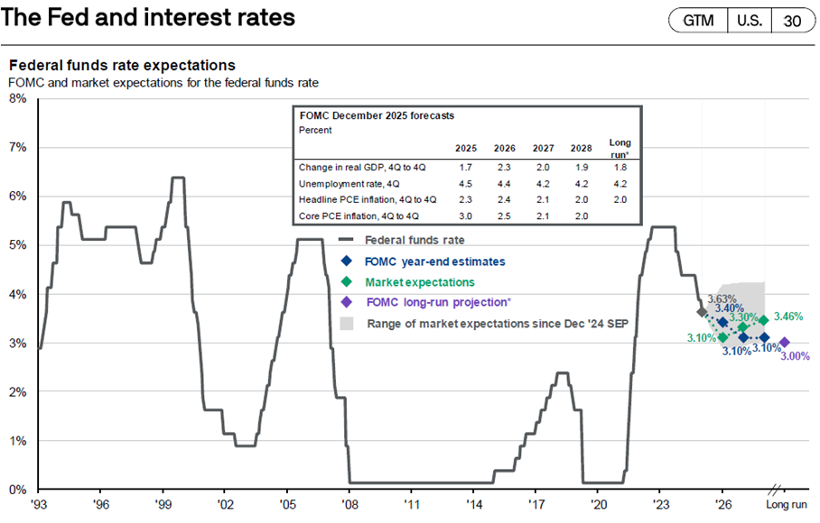 Below, we outline what may lie ahead for the Fed, how markets are interpreting its next moves, and why these decisions matter for portfolio positioning.